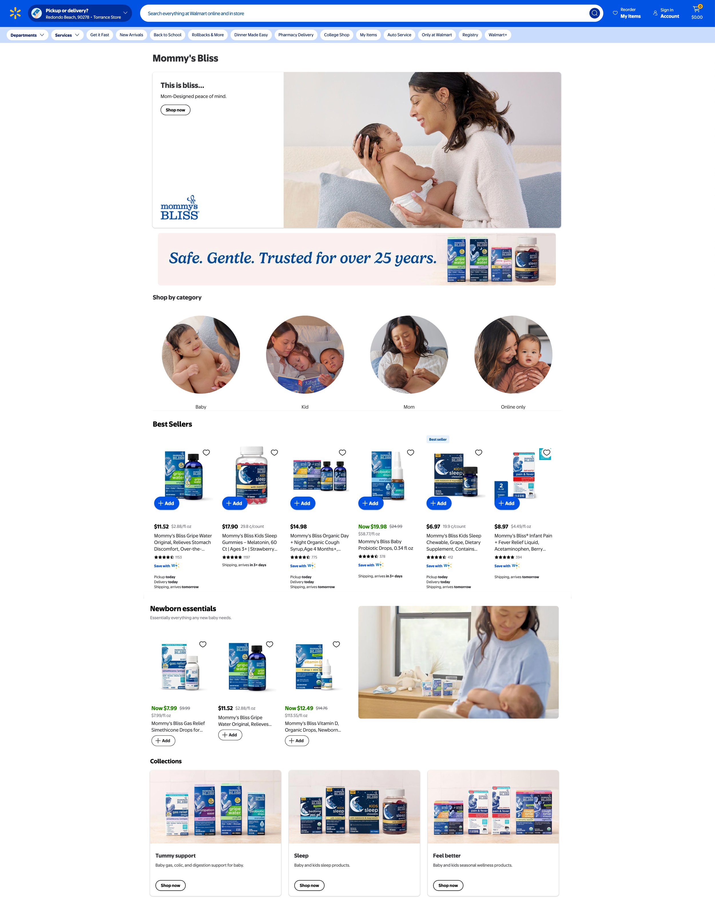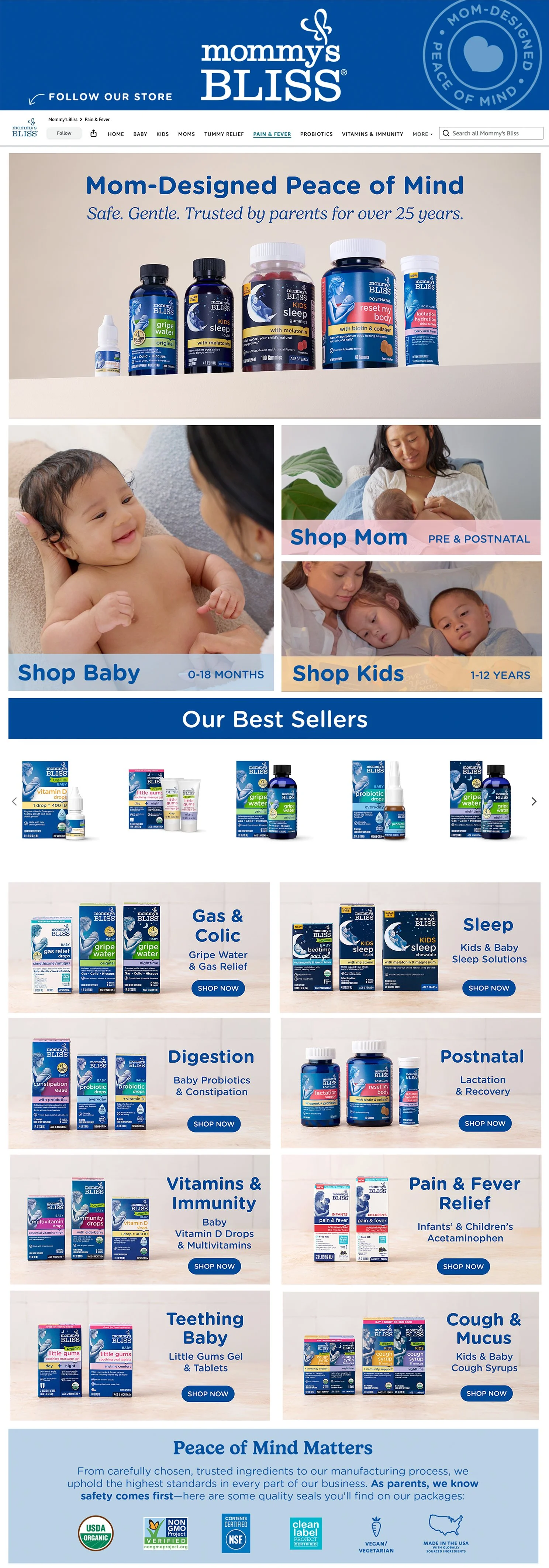 I led a complete brand visual identity transformation for Mommy’s Bliss, evolving its look, tone, and feel from outdated and sterile to warm, emotive, and connection-driven. I developed a visual direction that authentically reflects the bond between mom and baby, incorporating a softer, inviting color palette and heartfelt lifestyle photography. This refreshed identity not only elevated emotional engagement across social channels but also aligned the brand’s image with its mission to nurture and strengthen the mom-baby connection. Additionally, it laid the foundation for a cohesive Amazon storefront, Walmart brand store, DTC site, PDP video style, and a more engaging, consistent social presence—ensuring the brand experience feels unified across every touchpoint.